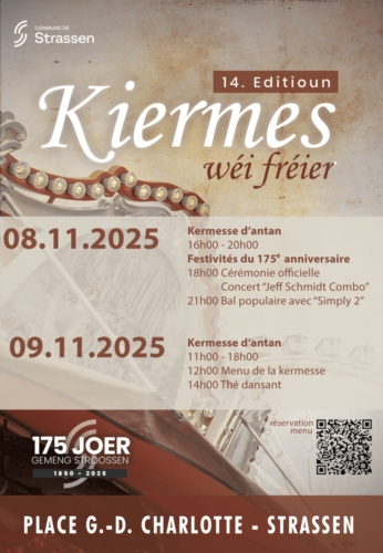 This year, we are celebrating the 175th anniversary of Strassen, with a “Kermesse Ball” as the main event, held within the framework of the “Kiermes wéi fréier” It’s the perfect opportunity to look back on the past and celebrate this anniversary together!