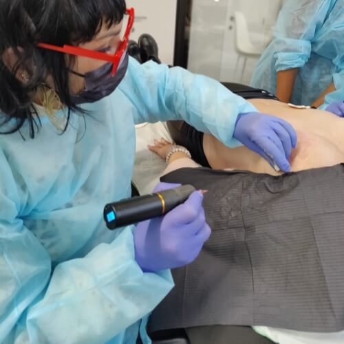 Trained in artistic and paramedical tattooing, image consulting, mental coaching, and hypnosis, Laura uses her skills to support people who have gone through medical challenges such as breast cancer, burns, or major surgeries.