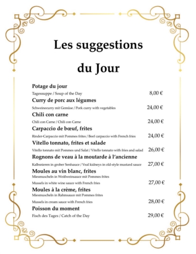 • Un « menu du golfeur » pour combler tous les appétits, avec chaque semaine une suggestion de plat luxembourgeois traditionnel et trois créations de saison.