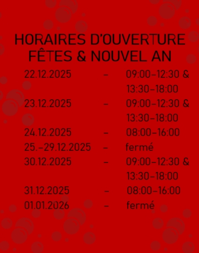 Tue – Fri: 9:00–12:30 & 13:30–18:00