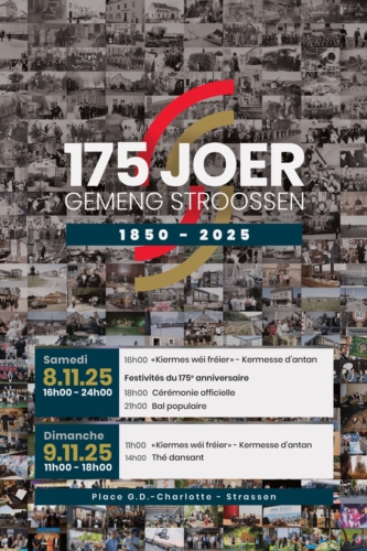 This year, we are celebrating the 175th anniversary of Strassen, with a “Kermesse Ball” as the main event, held within the framework of the “Kiermes wéi fréier” It’s the perfect opportunity to look back on the past and celebrate this anniversary together!