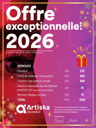 Zu Lëtzebuerg implantéiert an och iwwer d’Grenzen eraus aktiv, ënnerstëtzt Artiska Design & Technics seng Partner bei hire Kommunikatiounsstrategien, kreative Projeten an hirer visueller an digitaler Entwécklung – mat Engagement, Usproch an Authentizitéit.