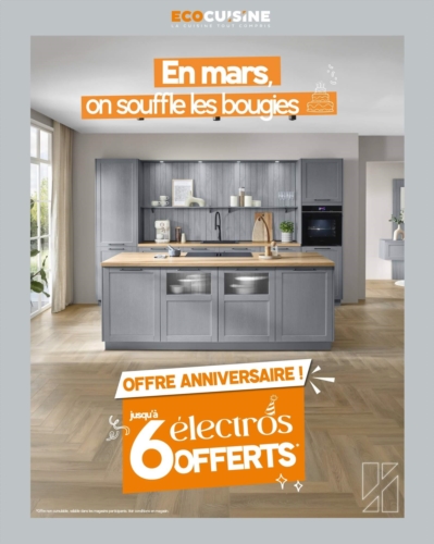 Jusqu’à 6 électroménagers OFFERTS pour l’achat de votre cuisine équipée.